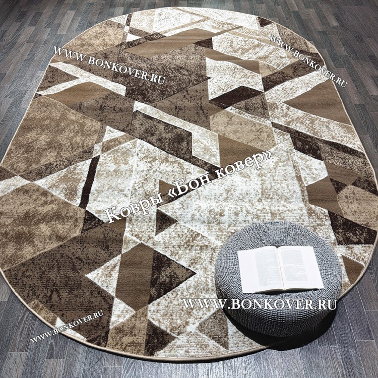 Ковер Лайт Карпет Рисунок 82 Бежево-Коричневый Овал станет стильным преображением вашей комнаты, подчеркивая высокий статус владельца.